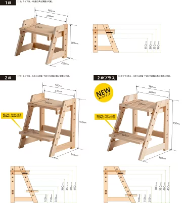 まま1段目も2段目も踏板の高さ調整ができるので、子供の成長に合わせて変化できるのが嬉しいポイント。